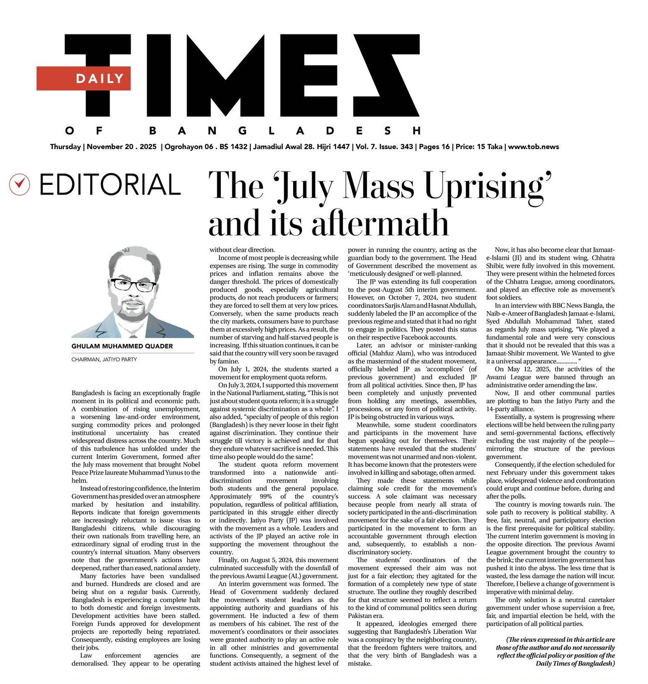 20 NOV 2025 | The Daily Times of Bangladesh